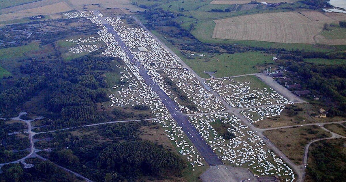 Oui, ces points blancs sont bel et bien des caravanes où crèchent les fidèles. Photos archives / DR